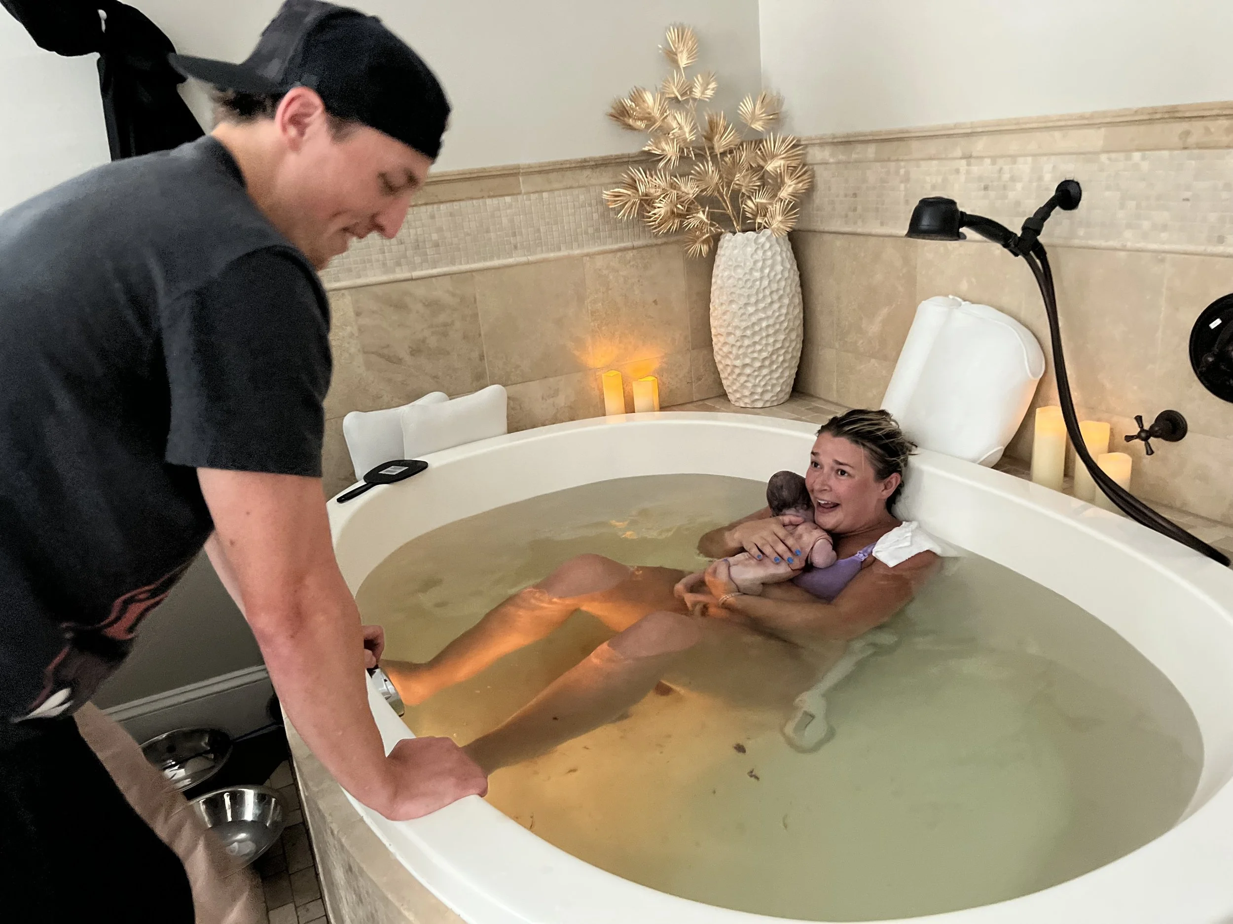 For as long as I can remember, I have dreamed of having a waterbirth but as soon as I found out I was pregnant, I started doubting that I could do it. My midwife team quickly turned into my biggest hype team (besides my partner Dan), and with each and every appointment I started believing that I could and would make this dream come true. I am also so lucky to have watched my sister go through her pregnancies with Andaluz Water Birth Center. After a tour of the center I left BEAMING and so at peace with this decision. There have only been a few times in my life that I’ve had this feeling, and this day was one of them. My experience with Andaluz was nothing short of amazing. Each midwife was attentive and made me feel capable, strong, and validated. What was more special is that I shared the same midwife as my sister who delivered my sweet nephews in the very same birth tub.